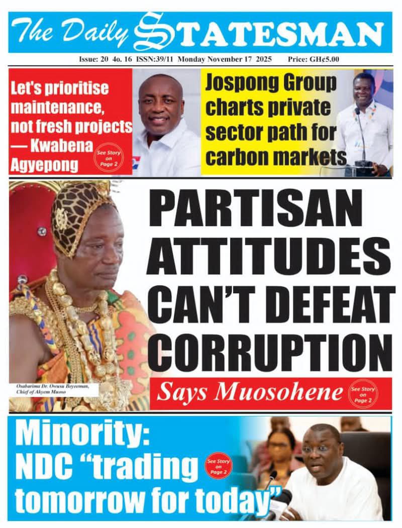 Newspaper headlines for Monday 17th November, 2025.