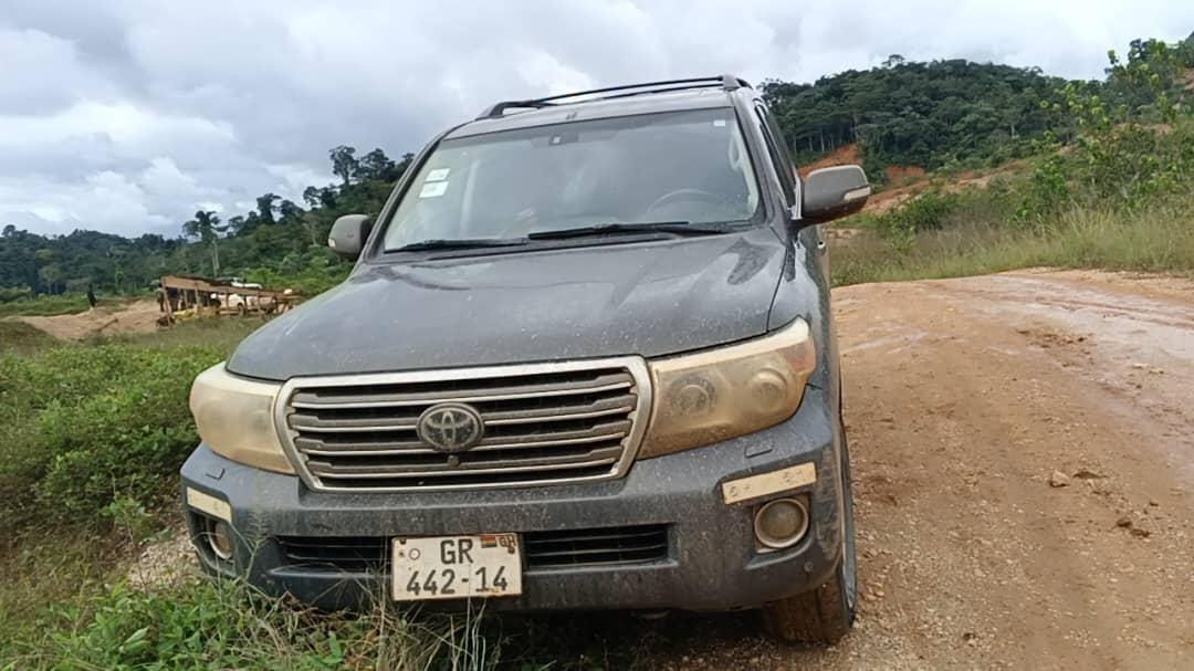 Once inside, the team discovered ongoing illegal mining activities along the Tano River, where a Toyota Land Cruiser V8 with registration number GR 442-14 was seen fleeing the scene.